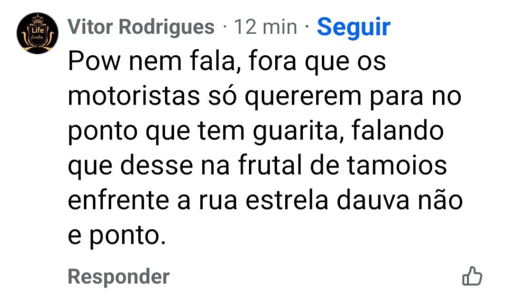 “Os motoristas só querem parar no ponto que tem guarita, falando que descer na Frutal de Tamoios, em frente à rua Estrela D’Alva, não é ponto.”